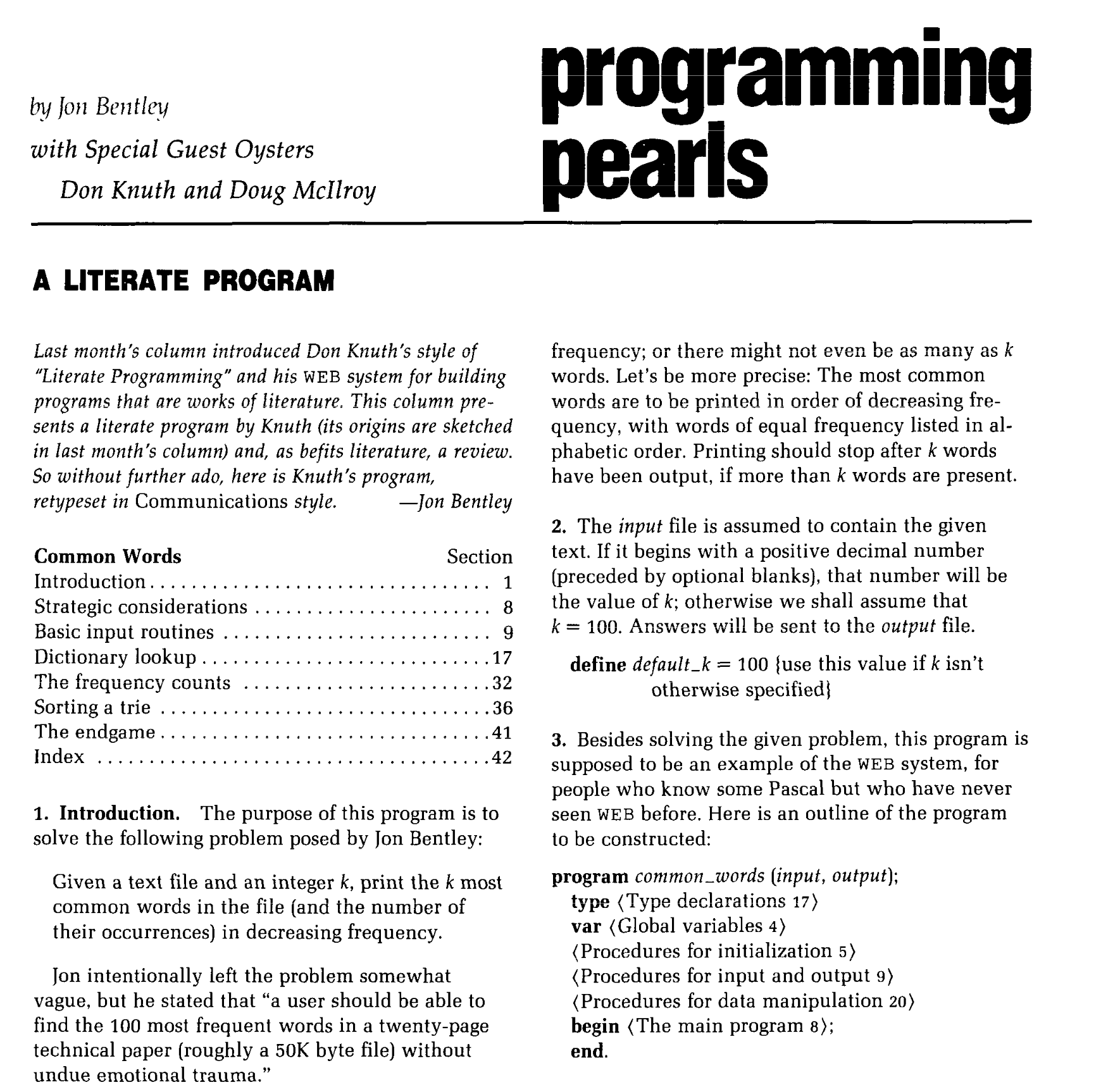 Le concept de programmation lettrée est conçu et opérationnalisé (Web, Tex) par Donald Knuth en 1977-78.